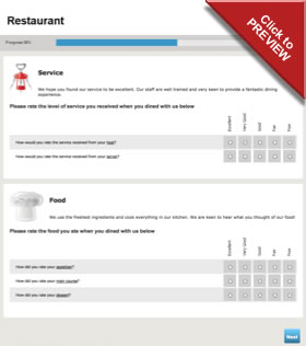 A customer satisfaction survey form for a restaurant - ratings for the service,